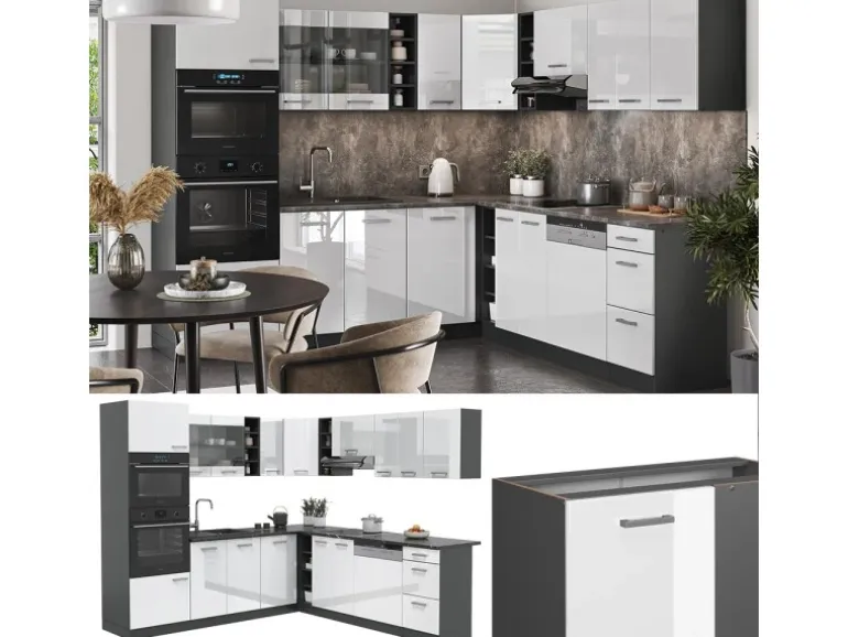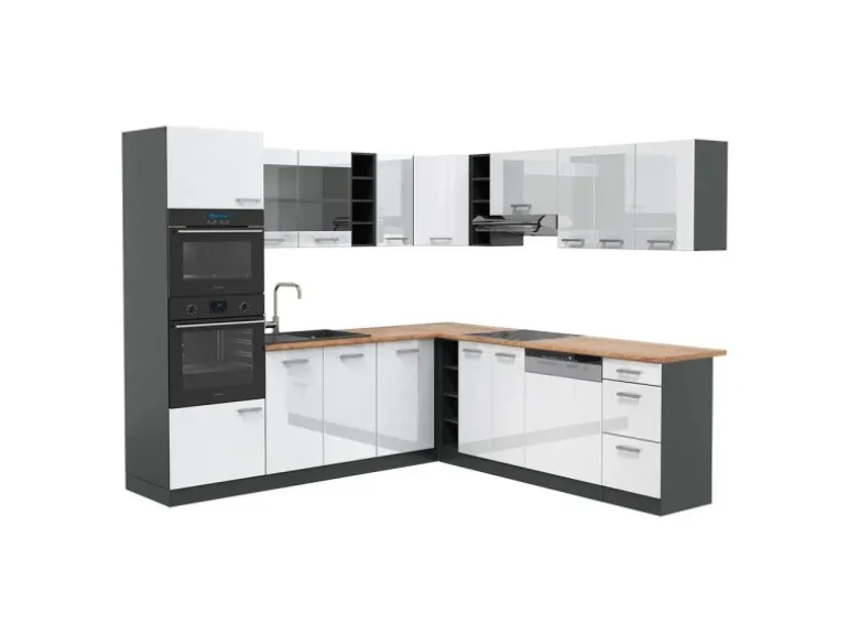 Die Küche in L-Form bietet zusätzliche Module und ein umstellbares Design nach Belieben
