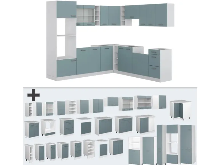 LIEFERUMFANG: Küchenblock als Bausatz, Arbeitsplatten, Montageanleitung, Montagematerial.