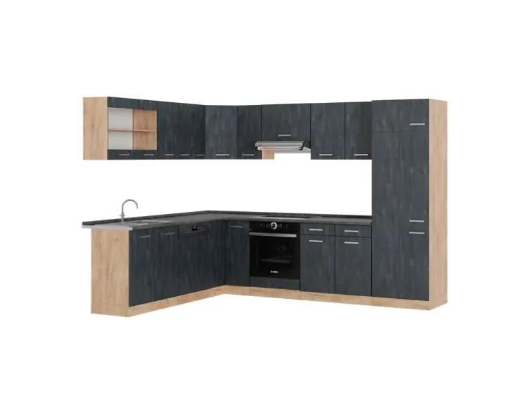 Die Küche in L-Form bietet zusätzliche Module und ein umstellbares Design nach Belieben