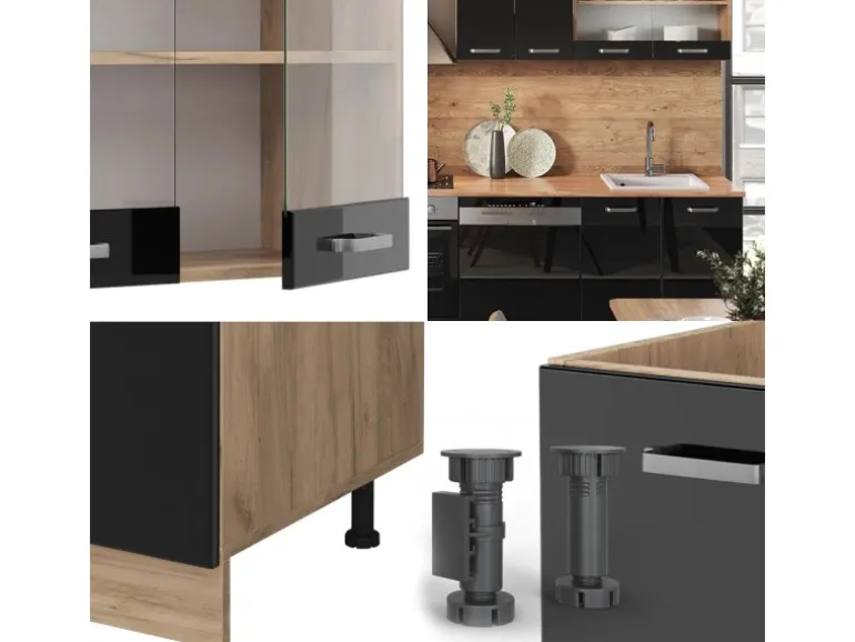 Der Küchenblock besteht aus pflegeleichter, melaminharzbeschichteter 16 mm Spanplatte.