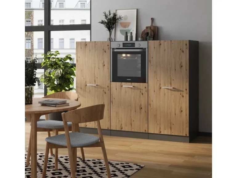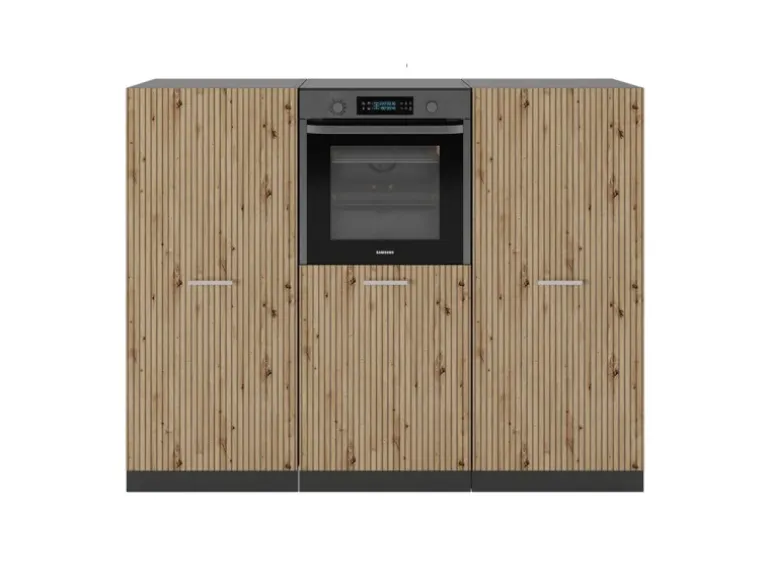 Die Mini Küchenzeile hat eine Breite von 180 cm, eine Höhe von 143 cm und eine Tiefe von 57 cm
