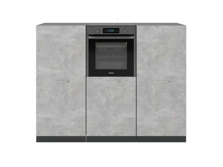 Die Mini Küchenzeile hat eine Breite von 180 cm, eine Höhe von 143 cm und eine Tiefe von 57 cm