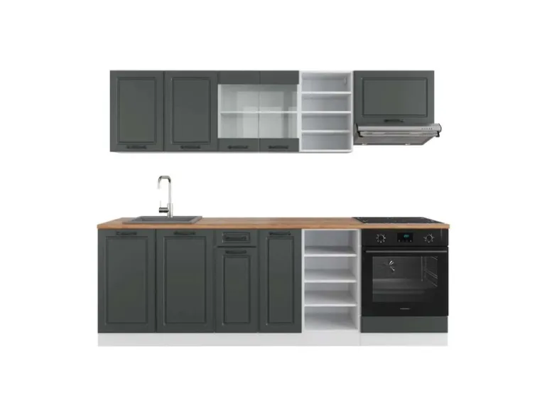 Das Küchenmöbel hat eine Breite von 240 cm, eine Höhe von 81,6 cm und eine Tiefe von 60 cm
