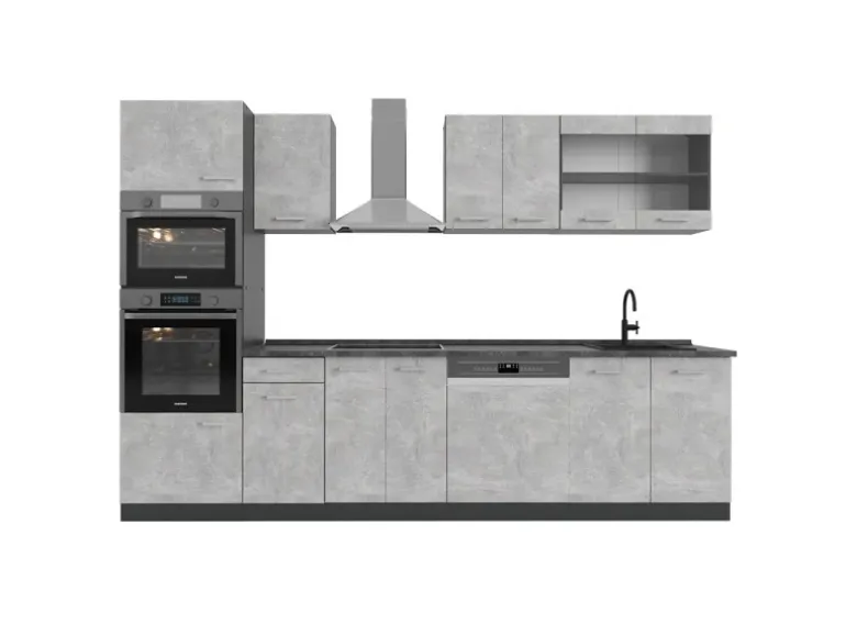 Das Küchenmöbel hat eine Breite von 300 cm, eine Höhe von 207 cm und eine Tiefe von 60 cm