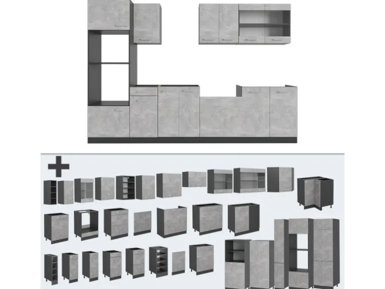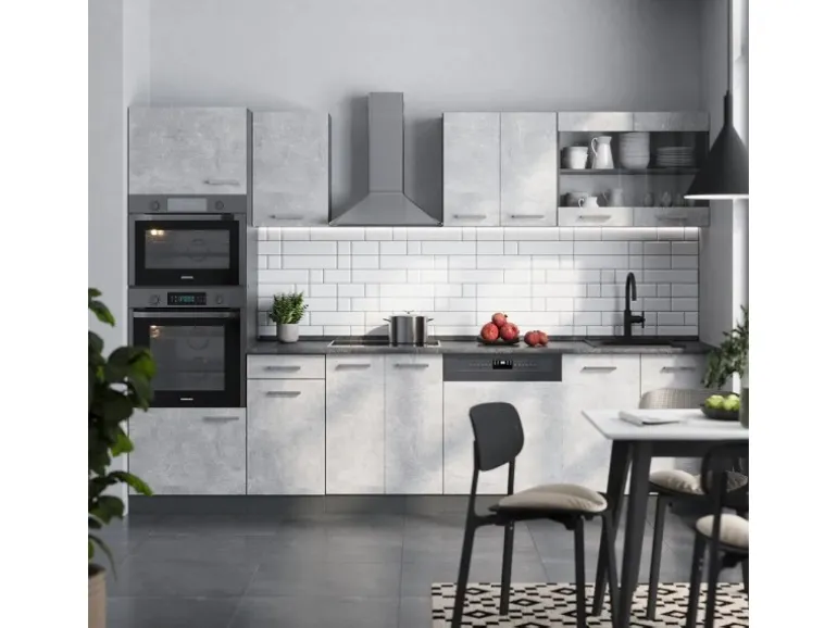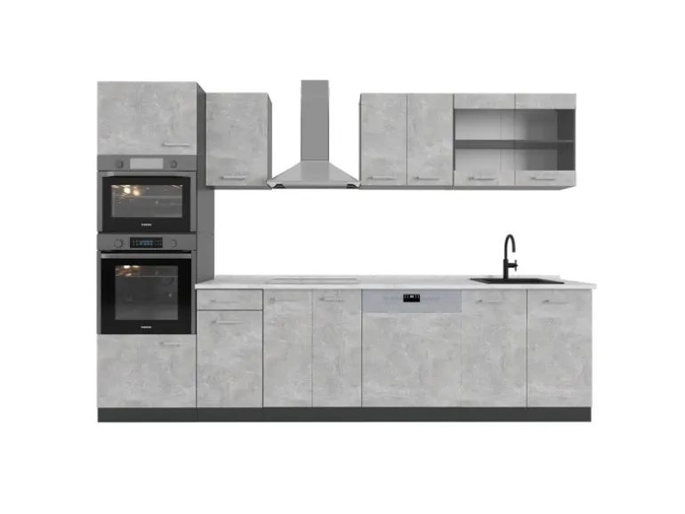 Das Küchenmöbel hat eine Breite von 300 cm, eine Höhe von 207 cm und eine Tiefe von 60 cm