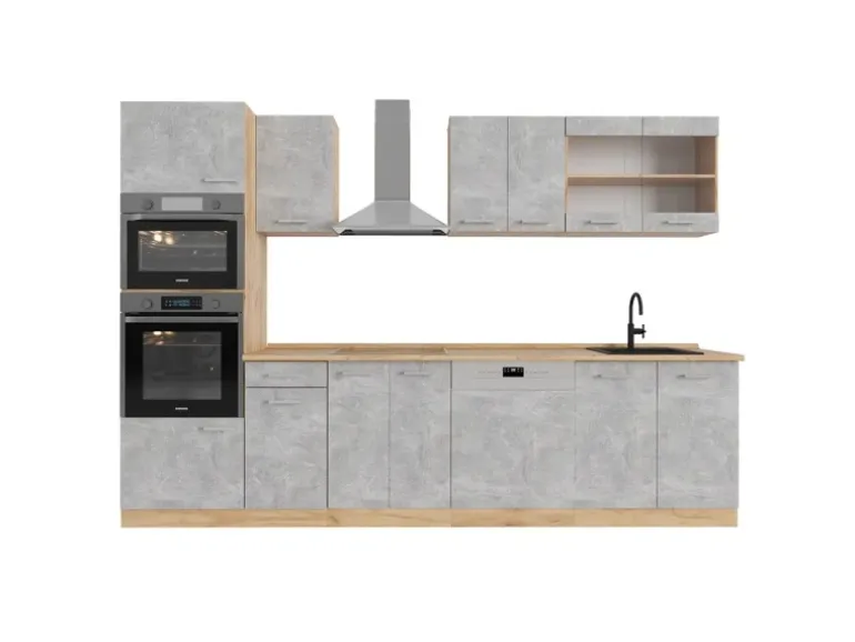 Das Küchenmöbel hat eine Breite von 300 cm, eine Höhe von 207 cm und eine Tiefe von 60 cm