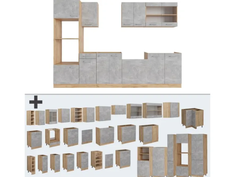 LIEFERUMFANG: Küchenblock mit Arbeitsplatte, Montagematerial, Montageanleitung.