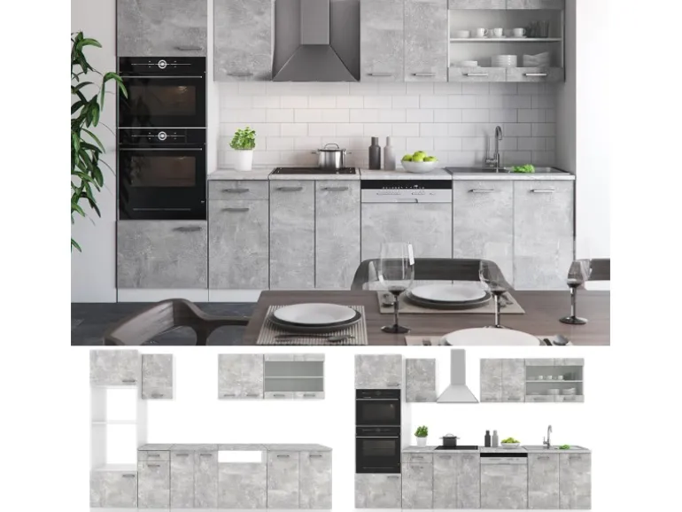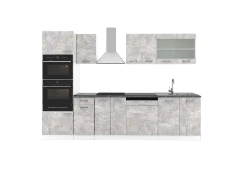 Das Küchenmöbel hat eine Breite von 300 cm, eine Höhe von 207 cm und eine Tiefe von 60 cm