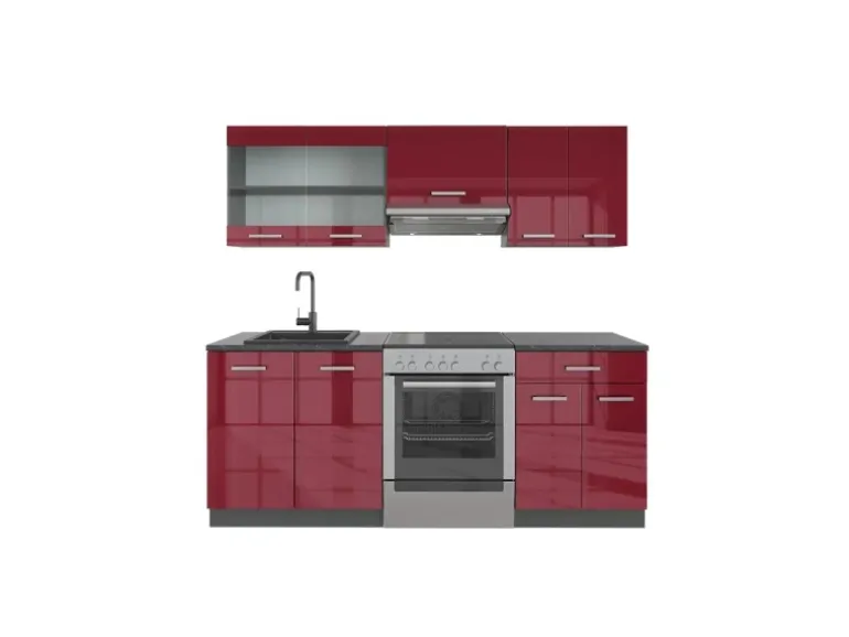 Das Küchenmöbel hat eine Breite von 200 cm, eine Höhe von 82 cm und eine Tiefe von 46 cm