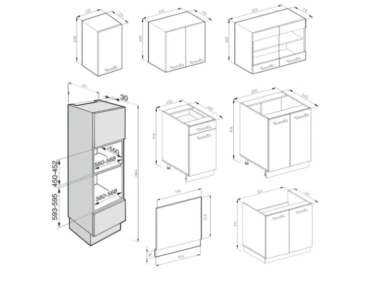 Das Küchenmöbel hat eine Breite von 300 cm, eine Höhe von 207 cm und eine Tiefe von 60 cm
