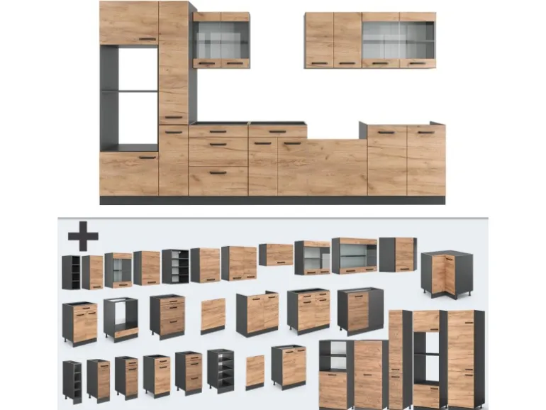 LIEFERUMFANG: Küchenblock ohne Arbeitsplatte, Montagematerial, Montageanleitung