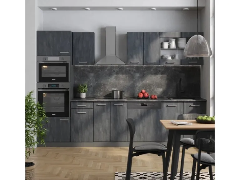 Das Küchenmöbel hat eine Breite von 300 cm, eine Höhe von 207 cm und eine Tiefe von 60 cm