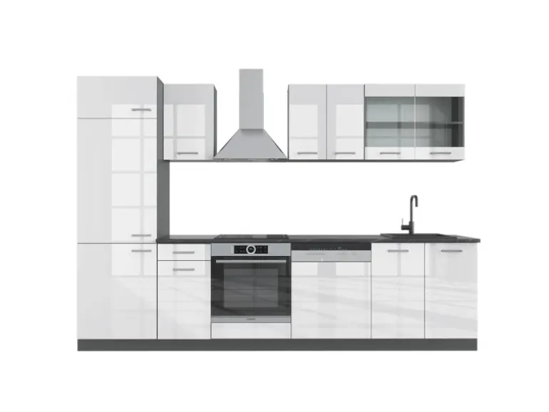 Das Küchenmöbel hat eine Breite von 300 cm, eine Höhe von 207 cm und eine Tiefe von 60 cm