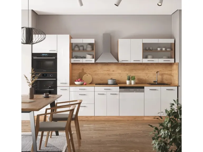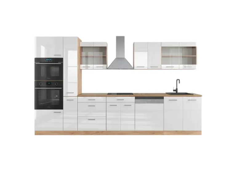 Das Küchenmöbel hat eine Breite von 350 cm, eine Höhe von 207 cm und eine Tiefe von 60 cm