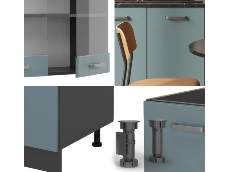 Der Küchenblock besteht aus pflegeleichter, melaminharzbeschichteter 16 mm Spanplatte.