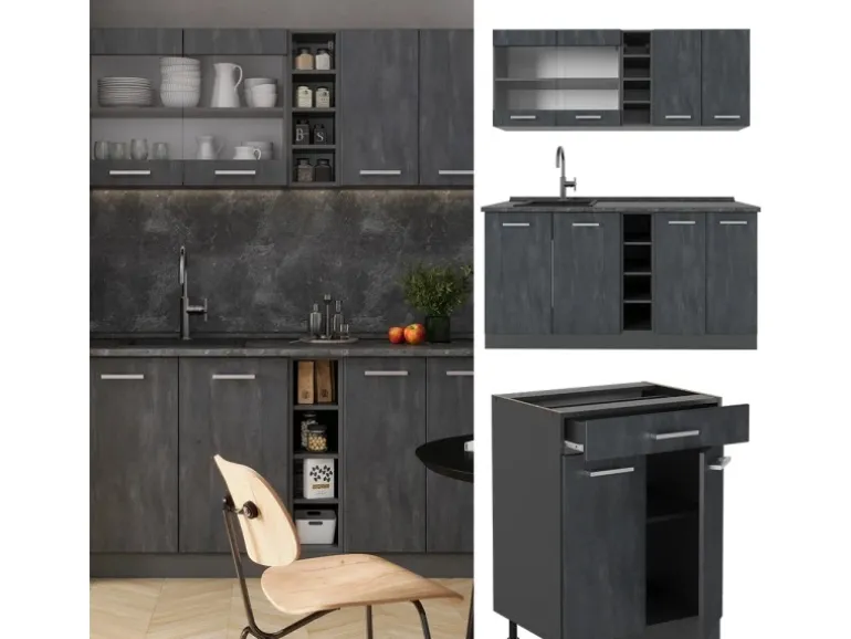 LIEFERUMFANG: Küchenzeile als Bausatz, Arbeitsplatte, Montageanleitung, Montagematerial.