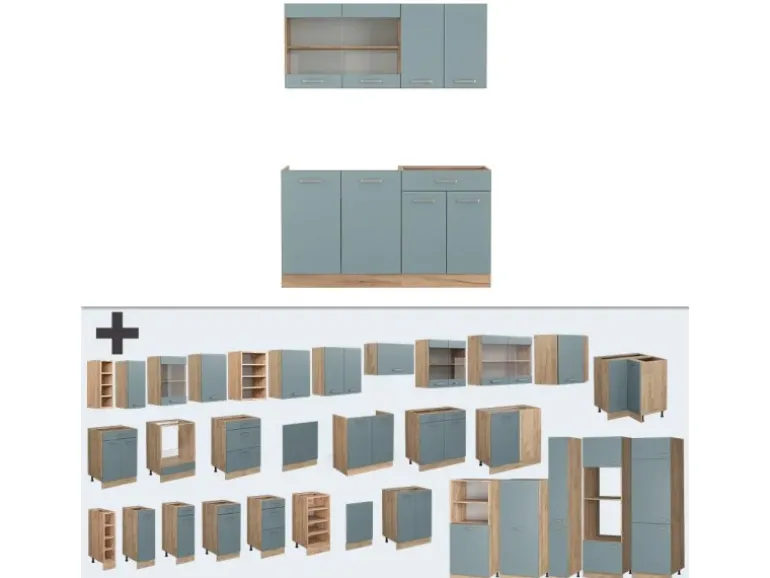 Die Küchenzeile ist modular aufstellbar und kann je nach Bedarf erweitert werden