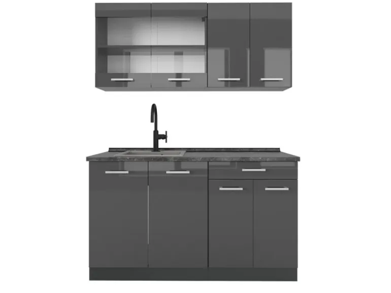 Der Küchenblock hat eine Breite von 140 cm, eine Höhe von 81,6 cm und eine Tiefe von 60 cm