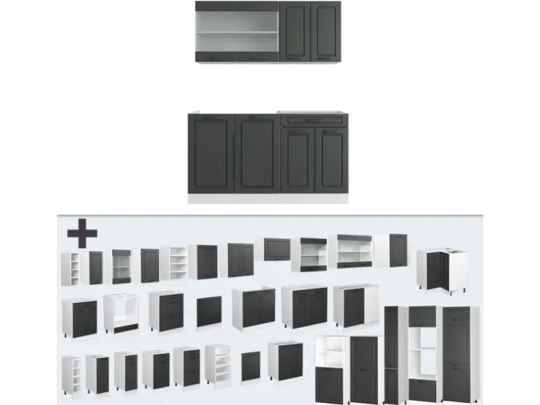 LIEFERUMFANG: Küchenblock ohne Arbeitsplatte, Montagematerial, Montageanleitung