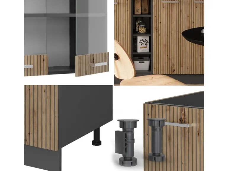 Der Küchenblock besteht aus pflegeleichter Spanplatte 16 mm, mit einer Melaminharzbeschichtung