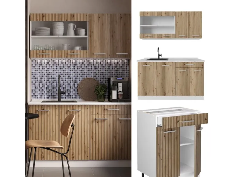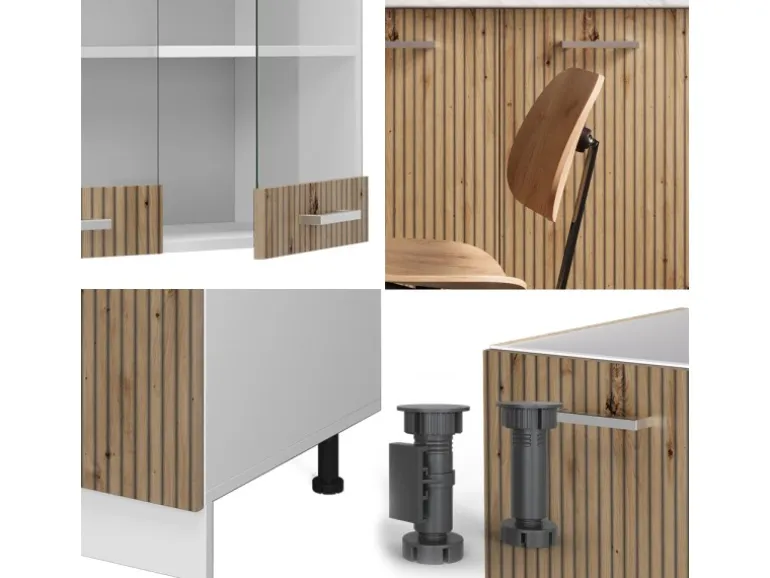 Der Küchenblock besteht aus pflegeleichter Spanplatte 16 mm, mit einer Melaminharzbeschichtung