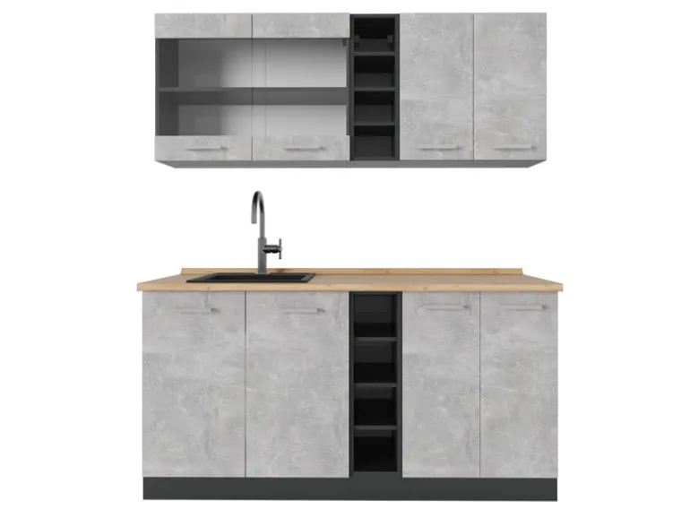 Das Küchenblock hat eine Breite von 160 cm, eine Höhe von 81,6 cm und eine Tiefe von 46 cm