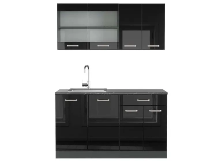 Der Küchenblock hat eine Breite von 140 cm, eine Höhe von 81,6 cm und eine Tiefe von 60 cm