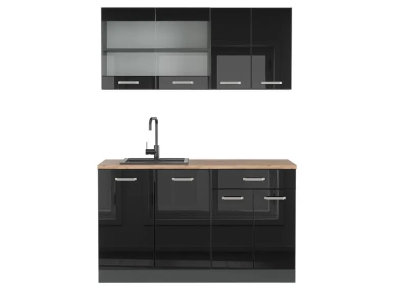 Der Küchenblock hat eine Breite von 140 cm, eine Höhe von 81,6 cm und eine Tiefe von 60 cm
