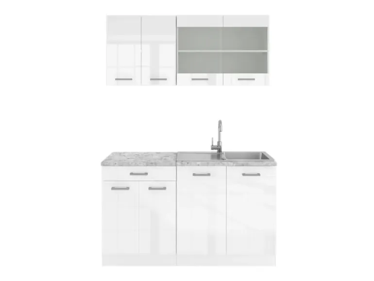 Der Küchenblock hat eine Breite von 140 cm, eine Höhe von 81,6 cm und eine Tiefe von 60 cm