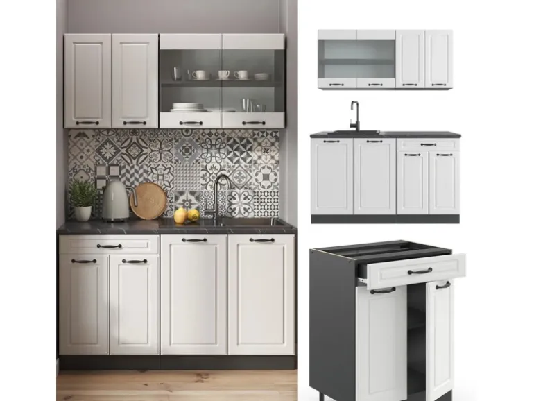 LIEFERUMFANG: Küchenblock ohne Arbeitsplatte, Montagematerial, Montageanleitung