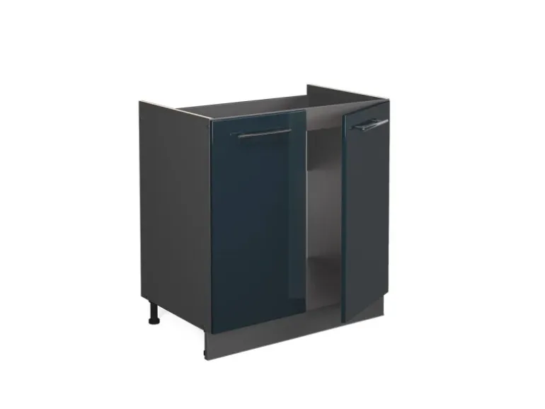 Der Spülenschrank hat Breite 80 cm, Höhe 82 cm und Tiefe 51,6 cm