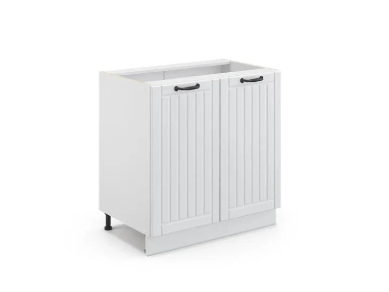 Der Spülenschrank hat Breite 80 cm, Höhe 82 cm und Tiefe 51,6 cm