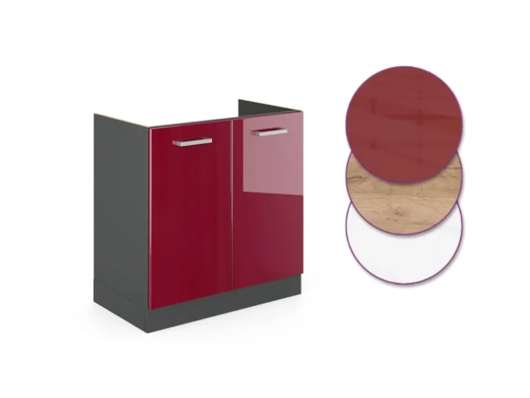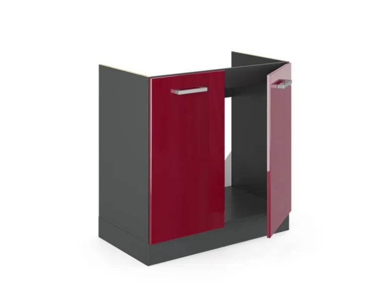 Der Spülenschrank hat Breite 80 cm, Höhe 81,6 cm und Tiefe 60 cm