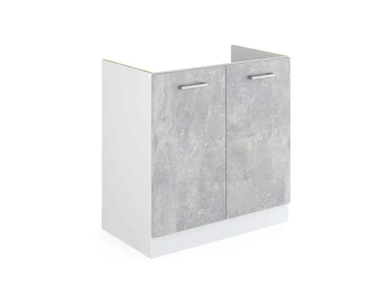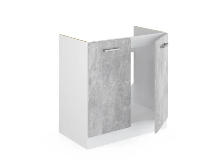 Der Spülenschrank hat Breite 80 cm, Höhe 81,6 cm und Tiefe 46 cm