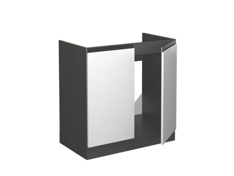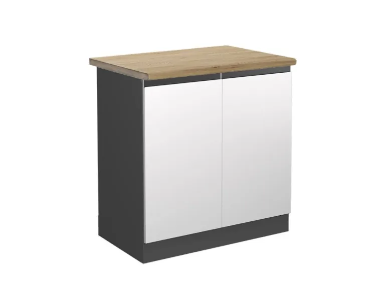 Der Spülenschrank hat Breite 80 cm, Höhe 81,6 cm und Tiefe 60 cm