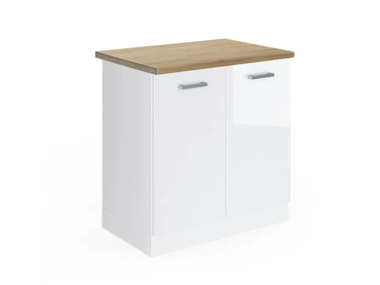 Der Spülenschrank hat Breite 80 cm, Höhe 81,6 cm und Tiefe 60 cm