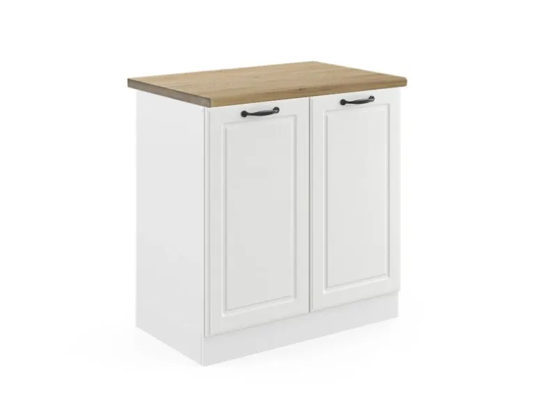Der Spülenschrank hat Breite 80 cm, Höhe 81,6 cm und Tiefe 60 cm