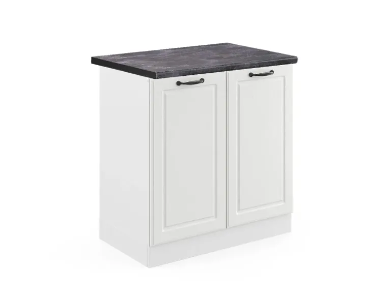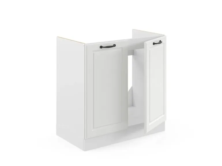 Der Spülenschrank hat Breite 80 cm, Höhe 81,6 cm und Tiefe 60 cm