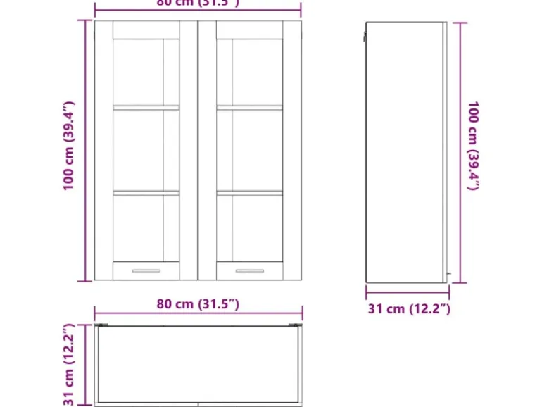 Gesamtabmessungen: 80 x 31 x 100 cm (L x B x H)