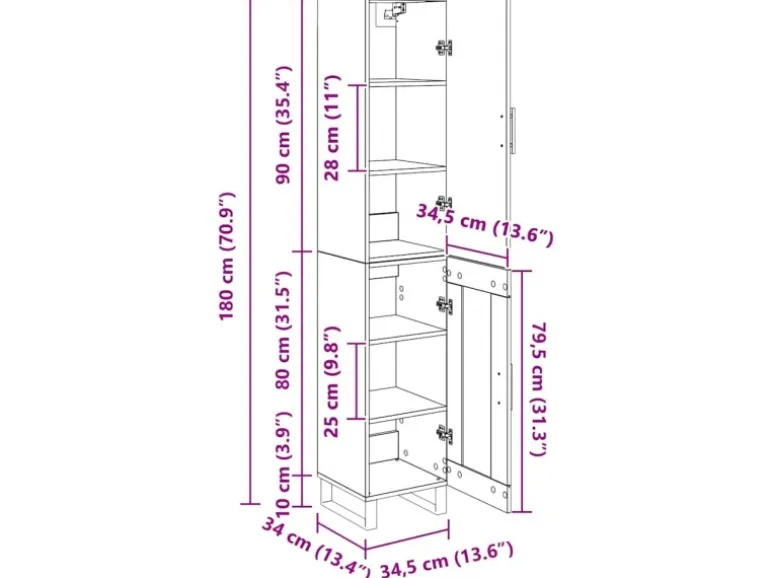 Gesamtabmessungen: 34,5 x 34 x 180 cm (B x T x H)