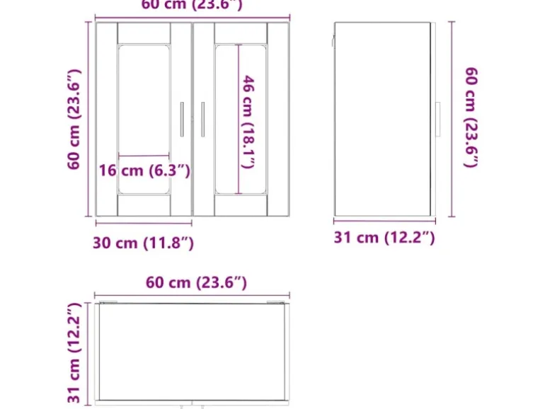 Gesamtabmessungen: 60 x 31 x 60 cm (B x T x H)
