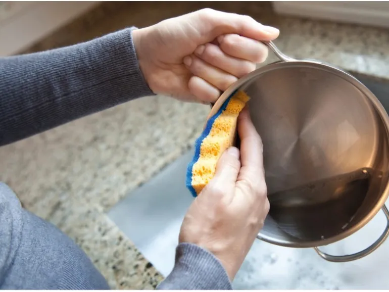 Scheuerteil: 30 % Fasern Polyamide/Polyester, 35 % Bindemittel Latex, 35 % Abrasive Partikeln Quartz