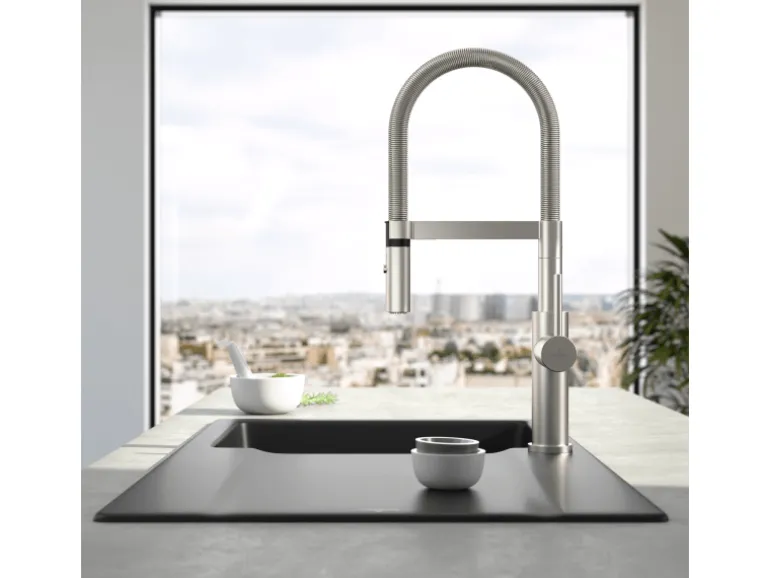 Die moderne und markante Steel Expert 2.0 mit komfortabler Höhe ist wahrhaft die Armatur für den Küchenprofi. Über die integrierte Umschaltfunktion kann neben dem klassischen Comfortstrahl auch zwischen dem Laminar- und Brausestrahl gewechselt werden. Der kristallklare Laminarstrahl eignet sich perfekt zum nahezu spritzfreien Waschen von Obst und Gemüse. Der kraftvolle Brausestrahl ist ideal für die Reinigung von Pfannen und Töpfen. Der Auslauf mit Spiralfeder ist zudem schwenkbar und verfügt über eine praktische Magnethalterung. Gefertigt ist die Armatur aus hochwertigem, robustem Edelstahl, der dauerhaft vor Kalk und Rost schützt und lange Freude am Produkt garantiert. Das gebürstete Edelstahl-Finish ist resistent gegen Fingerabdrücke und Fettflecken und somit sehr pflegeleicht. Die Armatur enthält eine qualitativ hochwertige und langlebige Keramikkartusche sowie flexible und geschmacksneutrale Anschlussschläuche. Das Villeroy & Boch-Fixierungssystem ermöglicht eine schnelle und einfache Installation in jedem Zuhause.