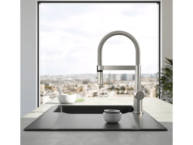 Die moderne und markante Steel Expert Compact ist wahrhaft die Armatur für den Küchenprofi. Mit ihrer Größe passt sie perfekt auch in kleine Küchen und sogar unter Hängeschränke. Über die integrierte Umschaltfunktion kann neben dem klassischen Comfortstrahl auch zwischen dem Laminar- und Brausestrahl gewechselt werden. Der kristallklare Laminarstrahl eignet sich perfekt zum nahezu spritzfreien Waschen von Obst und Gemüse. Der kraftvolle Brausestrahl ist ideal für die Reinigung von Pfannen und Töpfen. Der Auslauf mit Spiralfeder ist zudem schwenkbar und verfügt über eine praktische Magnethalterung. Gefertigt ist die Armatur aus hochwertigem, robustem Edelstahl, der dauerhaft vor Kalk und Rost schützt und lange Freude am Produkt garantiert. Das gebürstete Edelstahl-Finish ist resistent gegen Fingerabdrücke und Fettflecken und somit sehr pflegeleicht. Die Armatur enthält eine qualitativ hochwertige und langlebige Keramikkartusche sowie flexible und geschmacksneutrale Anschlussschläuche. Das Villeroy & Boch-Fixierungssystem ermöglicht eine schnelle und einfache Installation in jedem Zuhause.