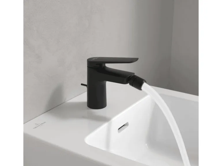 Villeroy & Boch Oasis Einhebel-Bidetarmatur mit Zugstange Keramikkartusch Wassersparend Auslaufhöhe 73mm Rund Matt Black