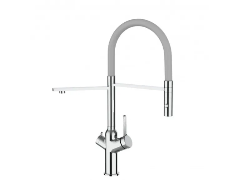 VIZIO 3 Wege Wasserhahn Küchenarmatur BOD mit 360° Schwenkbarem Auslauf Abnehmbare 2 Strahl Handbrause Verchromt   Grau