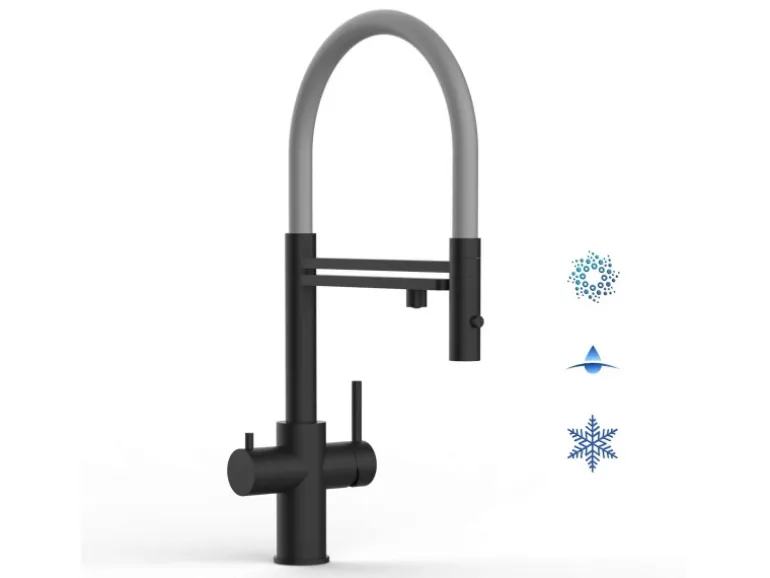 VIZIO 5 Wege Wasserhahn Küchenarmatur Edelstahl Massiv mit 360° Schwenkbarem Auslauf Abnehmbare 2 Strahl Handbrause PVD Schwarz Matt   Grau