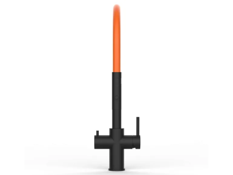 VIZIO 5 Wege Wasserhahn Küchenarmatur Edelstahl Massiv mit 360° Schwenkbarem Auslauf Abnehmbare 2 Strahl Handbrause PVD Schwarz Matt   Orange