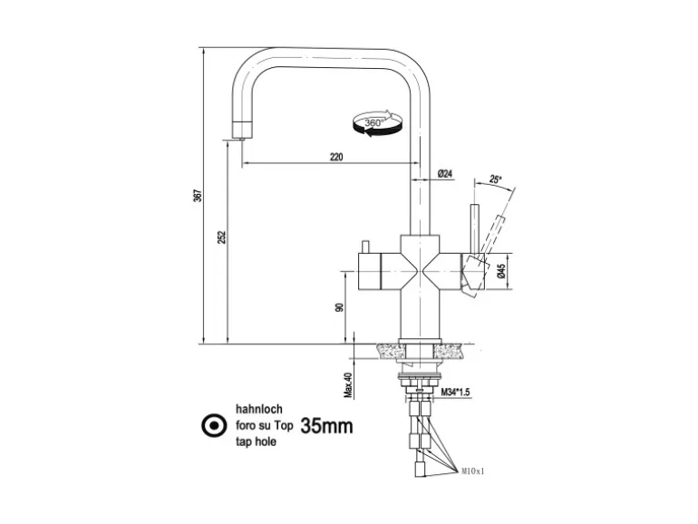 Empfohlener Arbeitsdruck: min. 1,5bar-max 4,5bar / Empfohlene Wassertemperatur: min. 5°C-max 65°C