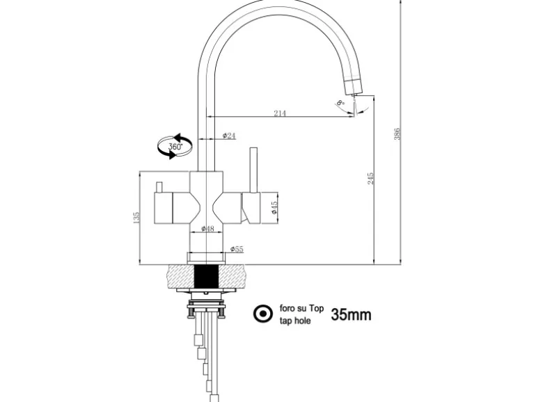 Kanal für gefiltertes Wasser aus Edelstahl, komplett getrennt vom Kanal für Leitungswasser